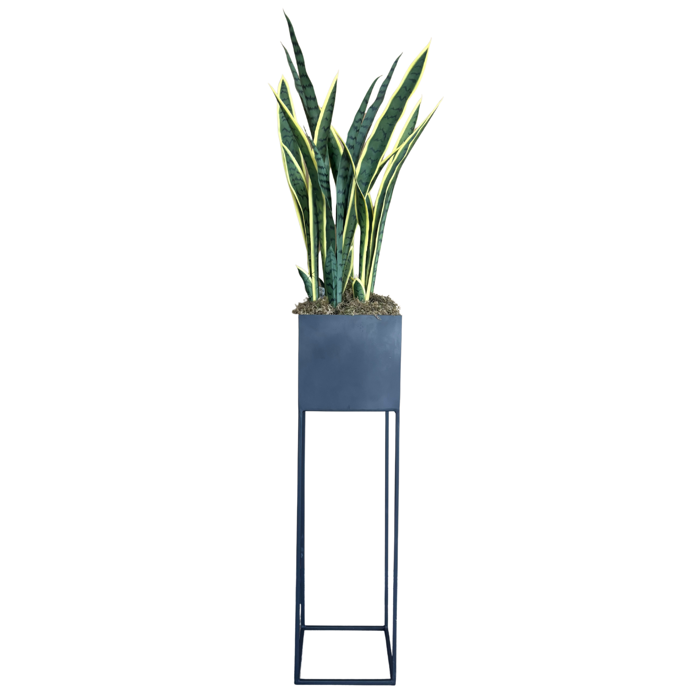 Create a bold, modern statement with this large square planter, complete with a Sansevieria (Snake Plant). Housed in a 25 cm square black metal box and elevated on a tall stand, this planter brings vertical interest and contemporary style to your living or workspace.