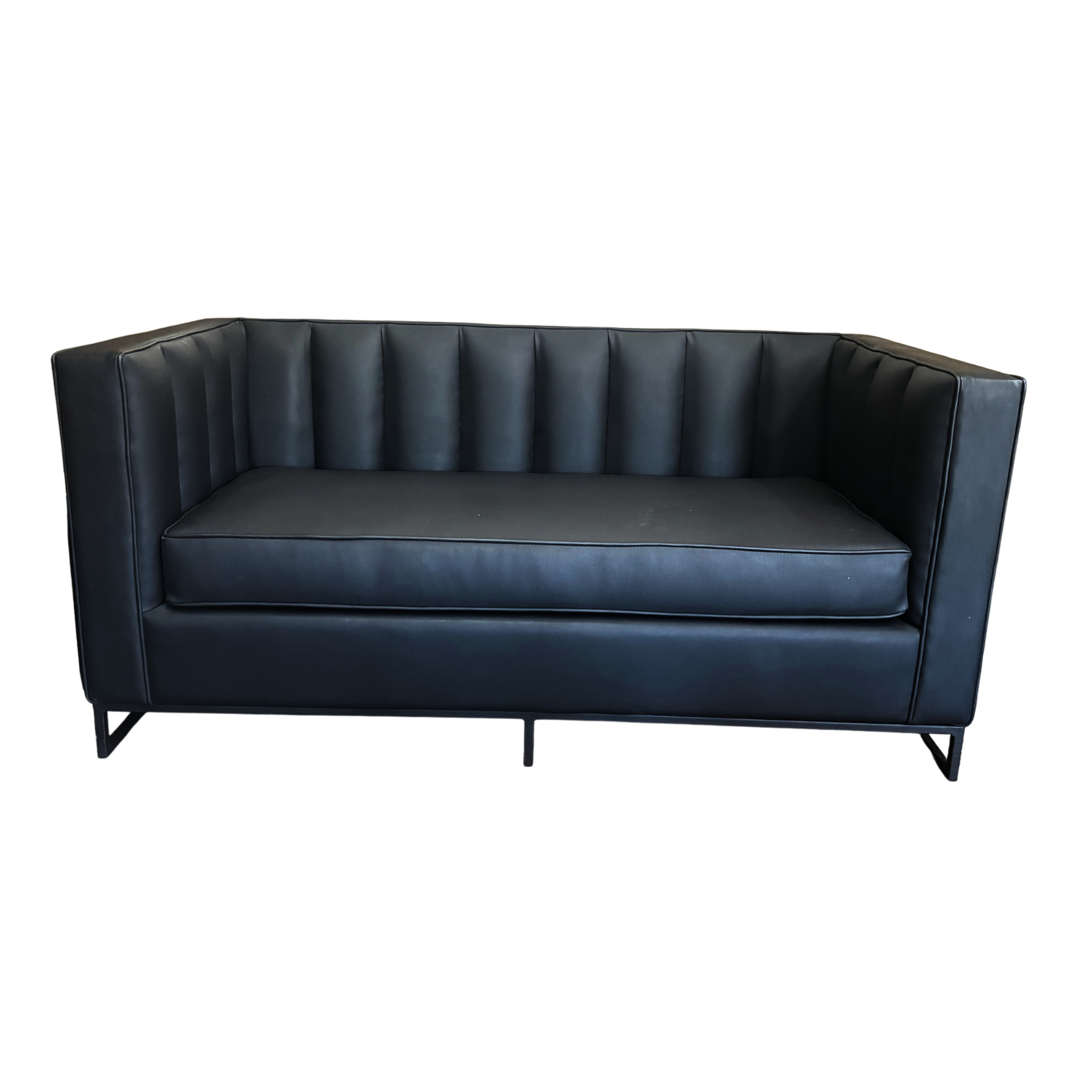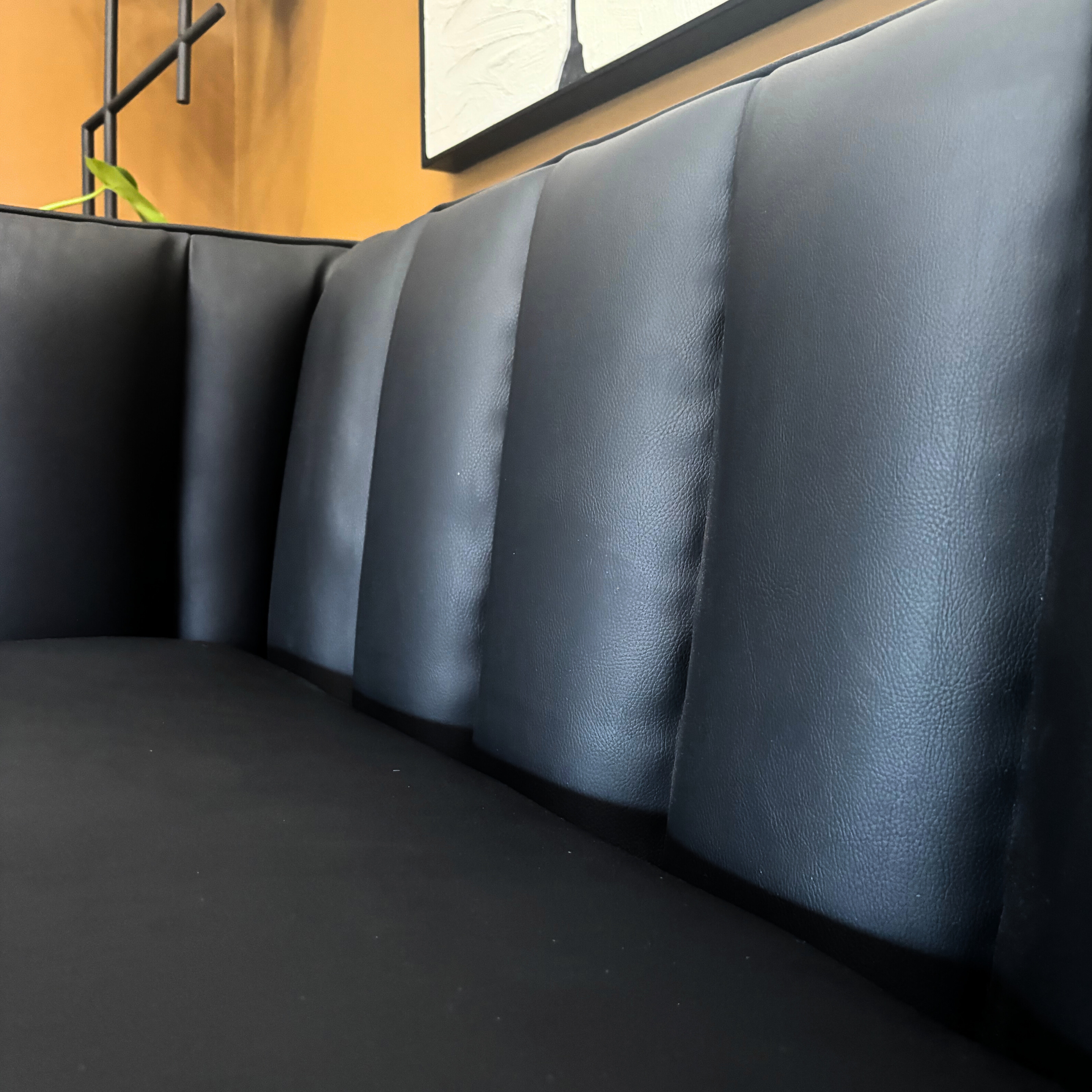 Add a bold, contemporary touch to your living space with this sleek faux leather sofa. Upholstered in smooth black faux leather, its clean lines and vertical channel-tufted backrest create a refined, structured look that complements modern interiors effortlessly.