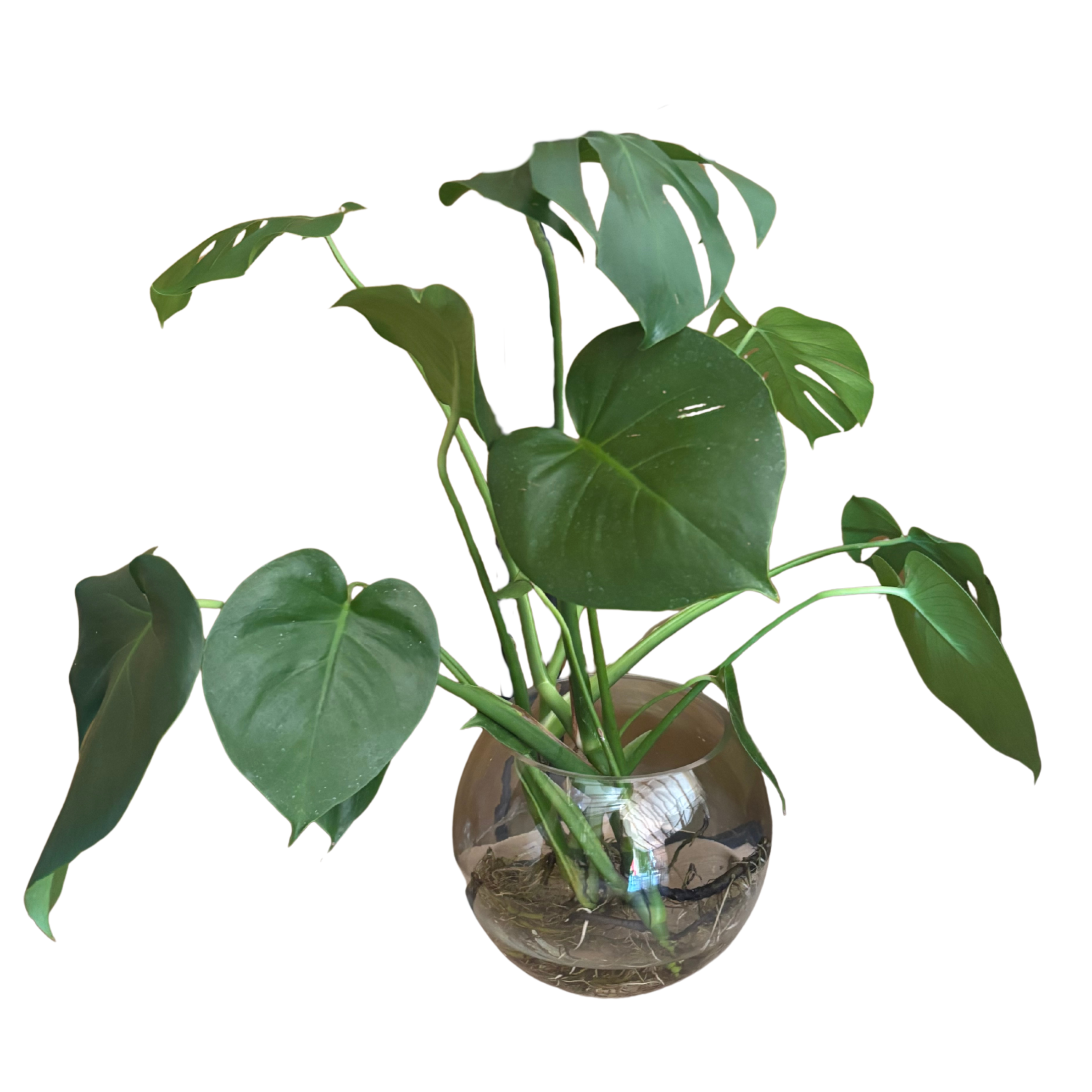 Bring effortless greenery into your space with this striking Delicious Monster, beautifully displayed in a clear glass bowl. Featuring lush, glossy split leaves, this statement plant adds a fresh, modern touch to any room. The transparent bowl showcases the natural root detail, enhancing its contemporary appeal.