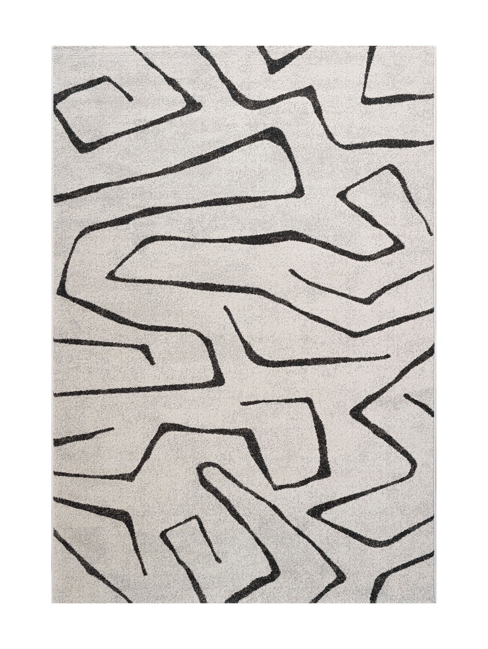 A contemporary beige area rug featuring an abstract, maze-inspired pattern in a soft, off-white tone. The raised textured design adds depth and dimension, while the neutral colour palette makes it easy to style in modern, minimalist, or natural interiors. Perfect for adding subtle character without overwhelming a space, this rug brings warmth, sophistication, and a stylish artistic touch to any room.